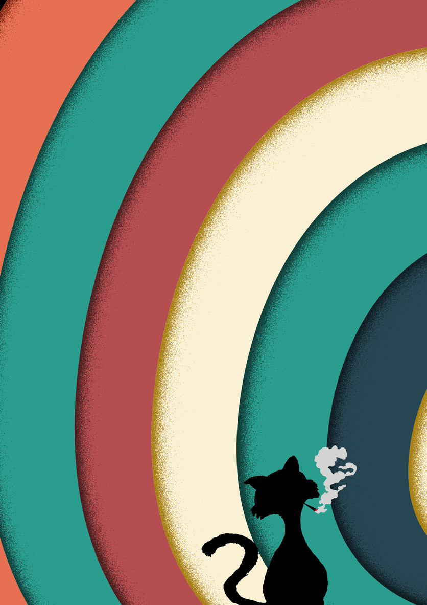 En el centro de este universo visual: la silueta de un gato bohemio, testigo mudo de melodías invisibles.